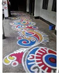 as in Bengal, houses are cleaned up and floors decorated with intricate, colourful